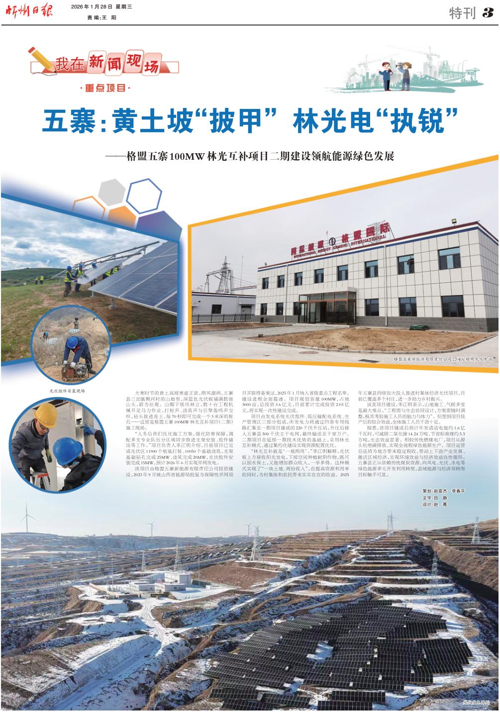 該項(xiàng)目由格盟五寨新能源有限責(zé)任公司投資建設(shè),2023年9月被山西省能源局批復(fù)為保障性并網(wǎng)項(xiàng)目并取得備案證,2025年1月納入省級(jí)重點(diǎn)工程名單,建設(shè)進(jìn)程全面提速。項(xiàng)目規(guī)劃容量100MW,占地3000畝,總投資3.6億元,目前累計(jì)完成投資2.03億元,將實(shí)現(xiàn)一次性建設(shè)完成。
