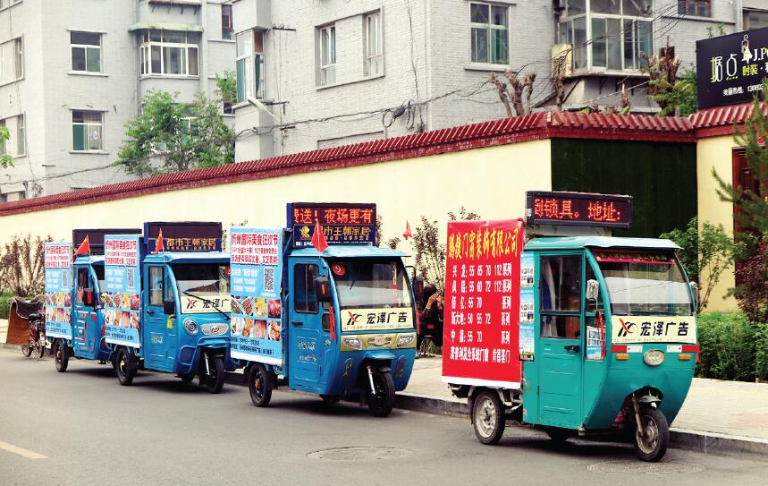 目前,我市正在創(chuàng)建全國文明城市,希望有關(guān)部門能夠同步跟進(jìn),下大力、出重拳,治理突出問題,切實(shí)改善城市面貌,不斷提高老百姓的幸福感和滿意度,為我市創(chuàng)建全國文明城市添磚加瓦。圖為停在非機(jī)動(dòng)車道上的電動(dòng)三輪廣告車。(張志遠(yuǎn) 攝)