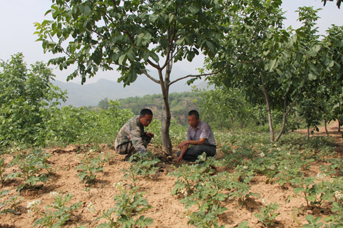 自古獨居一地的山藥蛋,如今又種上了核桃樹。這是五臺縣陽白鄉(xiāng)桑院村從五臺農(nóng)商銀行陽白支行貸款70萬元,實施科學種田的又一“絕招”。一般是1畝山藥蛋地間種10株核桃樹。畝產(chǎn)山藥蛋600公斤,收入960元。核桃樹畝產(chǎn)70公斤,收入1540元。共收入2500元,較單產(chǎn)山藥蛋900公斤的1440元增收58%。最大限度地發(fā)揮了坡地利用率。今年全村核桃樹“嫁”山藥蛋280畝,年產(chǎn)值可望達到70萬元,增收25.2萬元。(金俊賢 鄭光)