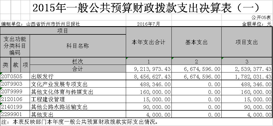 忻州日?qǐng)?bào)社2015年度部門(mén)決算