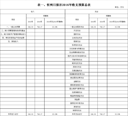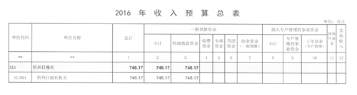 忻州日報社2016年度部門預算及“三公”經(jīng)費預算公開情況