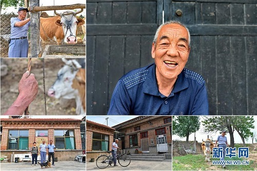 尚彩良,男,1949年出生,山西省長治市潞城區(qū)比干嶺村人,家傳的養(yǎng)殖技術(shù)讓他從小不愁吃穿,但突如其來的患病導(dǎo)致他生活陷入困難。2015年開始,他享受貧困戶養(yǎng)殖補(bǔ)貼、種植補(bǔ)貼和醫(yī)療補(bǔ)貼,2016年在當(dāng)?shù)卣膸椭伦∵M(jìn)了新房。 右上:尚彩良肖像;左上:尚彩良準(zhǔn)備去放牛;左中:尚彩良在放牛;左下:尚彩良(中)和家人在新院子里合影;下中:尚彩良推著自行車走進(jìn)院子;下右:尚彩良在去放牛的路上(拼版照片,6月12日攝)。 地處晉東南的山西省長治市,位于由太行山、太岳山環(huán)繞而成的上黨盆地中。在群山中、崖壁上,許多村莊自然條件惡劣,基礎(chǔ)設(shè)施落后,脫貧致富是大山深處人們的迫切心愿。 近年來,一場場脫貧攻堅戰(zhàn),在一個個深山村打響。政府全力探索脫貧路徑的同時,山區(qū)百姓因地制宜,靠自己的雙手和智慧走上致富路,交出了一份扎實(shí)的脫貧答卷。 記者在太行山、太岳山一路尋訪,記錄下多位70歲老人的生活。這些共和國的同齡人,親歷了山鄉(xiāng)的巨變,見證著長治山區(qū)脫貧攻堅偉大工程的一步步推進(jìn)。 新華社記者 曹陽 攝