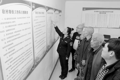 圖為環(huán)保干部為村民講解上墻公開(kāi)的幫扶職責(zé)。金俊賢 攝