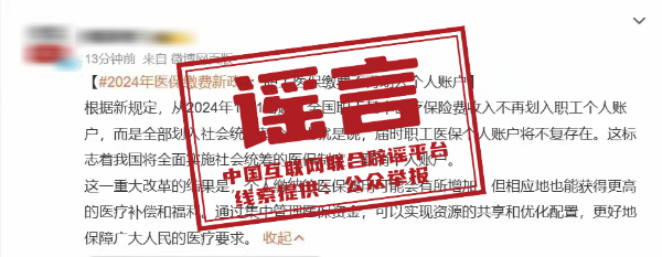 謠言:2024年職工醫(yī)保繳費(fèi)將不再劃入個人賬戶?