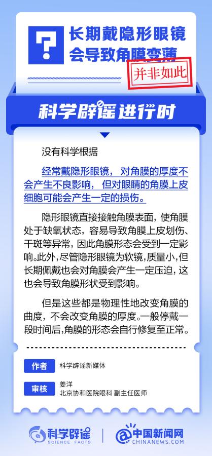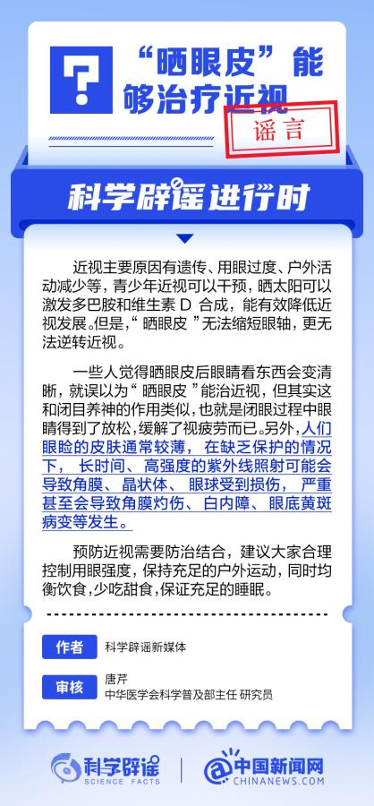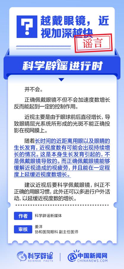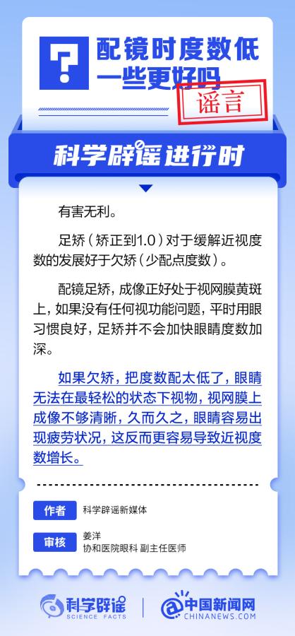 中新網(wǎng)6月6日電 6月6日是全國愛眼日。隨著大家越來越重視護(hù)眼,人們開始自發(fā)地從網(wǎng)上查找一些護(hù)眼知識,與此同時,網(wǎng)上也出現(xiàn)了很多的護(hù)眼誤區(qū)。有哪些常見的所謂“護(hù)眼知識”其實是誤區(qū)?眼鏡度數(shù)配高點好還是配低點好?詳情↓ (來源:@科學(xué)辟謠 中國新聞網(wǎng)微博)