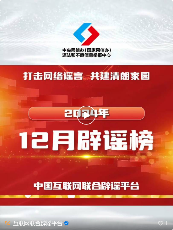 打擊網(wǎng)絡(luò)謠言 共建清朗家園 中國(guó)互聯(lián)網(wǎng)聯(lián)合辟謠平臺(tái)2024年12月辟謠榜
