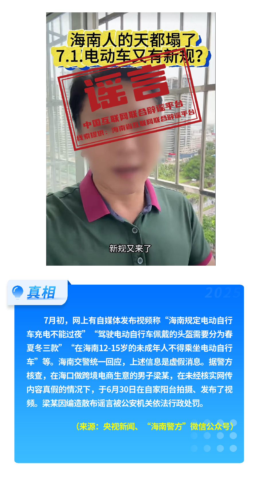 有人重新翻炒“醫(yī)?!畟€人賬戶’將全部取消”舊謠,故意歪曲醫(yī)保改革真實內(nèi)涵,嚴(yán)重誤導(dǎo)公眾對醫(yī)保改革政策的理解?!坝袑H松祥T服務(wù)激活醫(yī)保碼”,披著“公共服務(wù)”的外衣,實有詐騙之嫌和安全風(fēng)險。憑空捏造“海南規(guī)定電動自行車充電不能過夜、頭盔分三季”這一“奇葩規(guī)定”,以“新規(guī)”話術(shù),擾亂交通管理秩序。