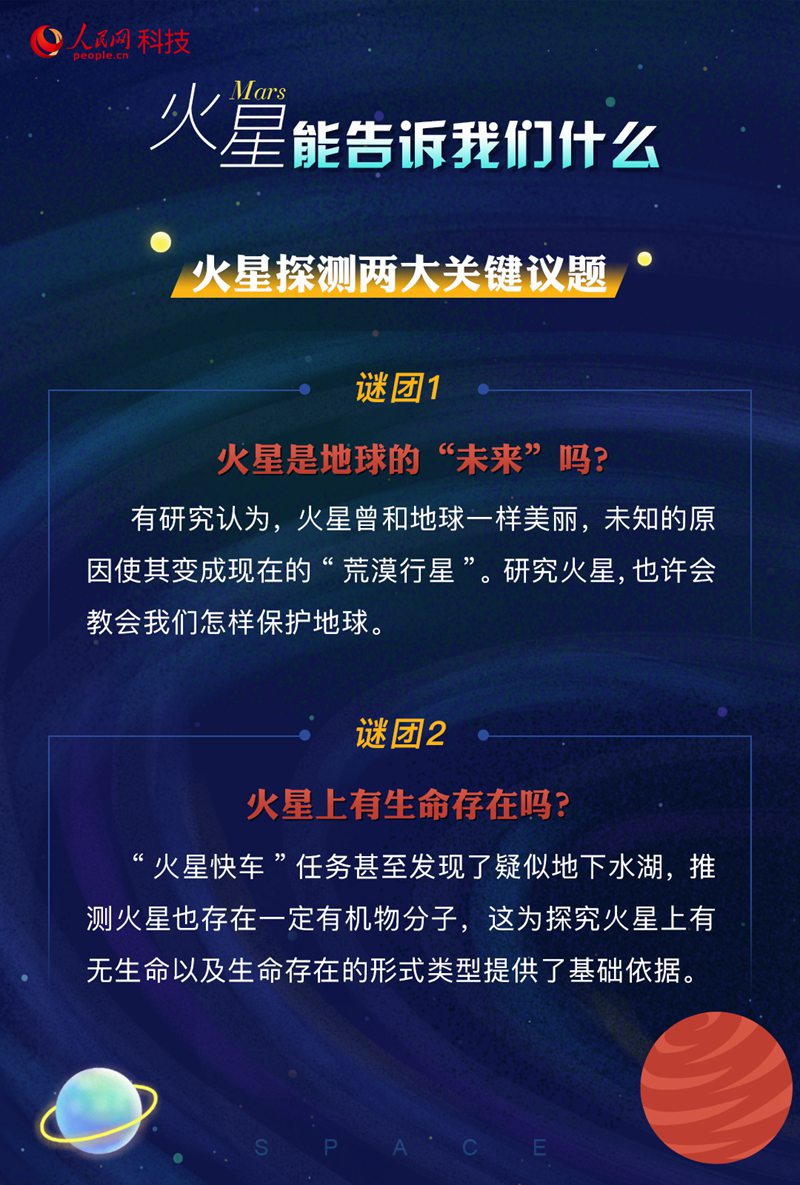 是什么原因?qū)е禄鹦鞘チ怂克鯓訌囊粋€藍色星球變成現(xiàn)在一片荒漠的紅色星球?其大氣、環(huán)境是如何演化的?火星的今天有沒有可能就是地球的明天?這些都是科學家們想要通過相關(guān)探測去解答的問題。