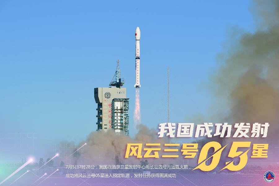 7月5日7時28分,我國在酒泉衛(wèi)星發(fā)射中心用長征四號丙運載火箭,成功將風云三號05星送入預定軌道,發(fā)射任務獲得圓滿成功。新華社發(fā)(汪江波 攝)