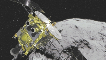 日本宇宙航空研究開發(fā)機(jī)構(gòu)的小行星探測器“隼鳥2號”接近其目標(biāo)小行星“龍宮”。圖片來源:日本宇宙航空研究開發(fā)機(jī)構(gòu)
