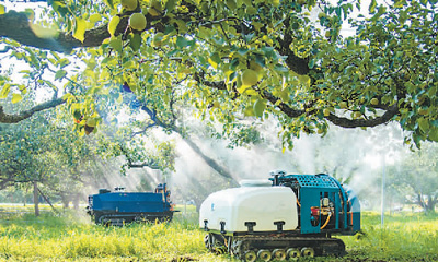 安徽省宿州市碭山縣近年大力推廣“人工智能+數(shù)字果園”模式,推動碭山酥梨產(chǎn)業(yè)智能化、數(shù)字化轉(zhuǎn)型,為鄉(xiāng)村振興和數(shù)字鄉(xiāng)村建設(shè)夯實基礎(chǔ)。圖為碭山縣一家果園內(nèi),果園機器人在噴施生物農(nóng)藥。崔 猛攝(人民視覺)