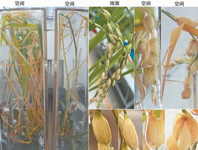 水稻空間開花時(shí)間比地面略有提前,但是灌漿時(shí)間延長(zhǎng)了10多天,大部分穎殼不能關(guān)閉。開花時(shí)間和穎殼閉合均是水稻的重要農(nóng)藝性狀,二者在保障植物充分生殖生長(zhǎng)和獲得高產(chǎn)優(yōu)質(zhì)種子方面都有重要作用,此過(guò)程受到基因表達(dá)的調(diào)控,后續(xù)將利用返回樣品進(jìn)一步分析。