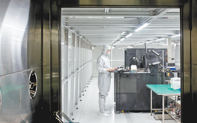 穿上防塵服,再經(jīng)過兩次噴淋除塵,記者才能進入創(chuàng)新中心的芯片封裝測試驗證平臺。
