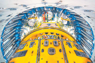 “江海號”盾構(gòu)機(jī)內(nèi)景。范少文攝(人民視覺)