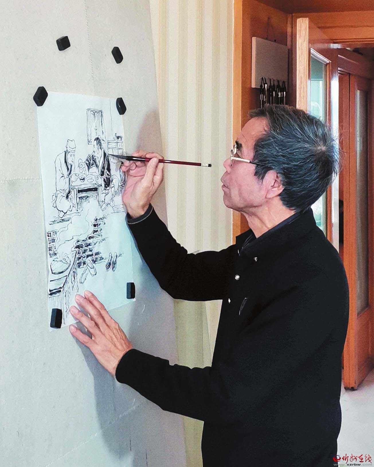 “夢圓畫室”的主理人叫艾吉虎,正如他的視頻號名字一樣,繪畫是他人生的最大愛好和情感寄托。早些年,艾吉虎曾利用繪畫專長從事過玻璃雕畫,隨著玻璃雕畫在裝修行業(yè)的沒落,艾吉虎轉(zhuǎn)戰(zhàn)其他行業(yè),但兜兜轉(zhuǎn)轉(zhuǎn)離不開他的繪畫愛好。在原平市民俗文化研究會當美編期間,艾吉虎開始嘗試“小人書”的繪畫創(chuàng)作,沒承想,幾個插圖畫出來,得到許多人的熱烈追捧,這激發(fā)了他繼續(xù)創(chuàng)作的熱情。