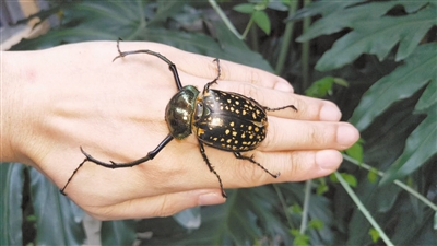 “這種甲蟲(chóng)的發(fā)現(xiàn)地都是生態(tài)環(huán)境很好的茂密叢林,它的出現(xiàn)可以看做是自然環(huán)境保護(hù)得當(dāng)?shù)囊粋€(gè)標(biāo)志?!壁w力說(shuō),體形對(duì)比之下,格彩臂金龜?shù)捏w形比陽(yáng)彩臂金龜要小一些。陽(yáng)彩臂金龜一般的體長(zhǎng)可以達(dá)到7厘米,而格彩臂金龜?shù)捏w長(zhǎng)只有5厘米多。