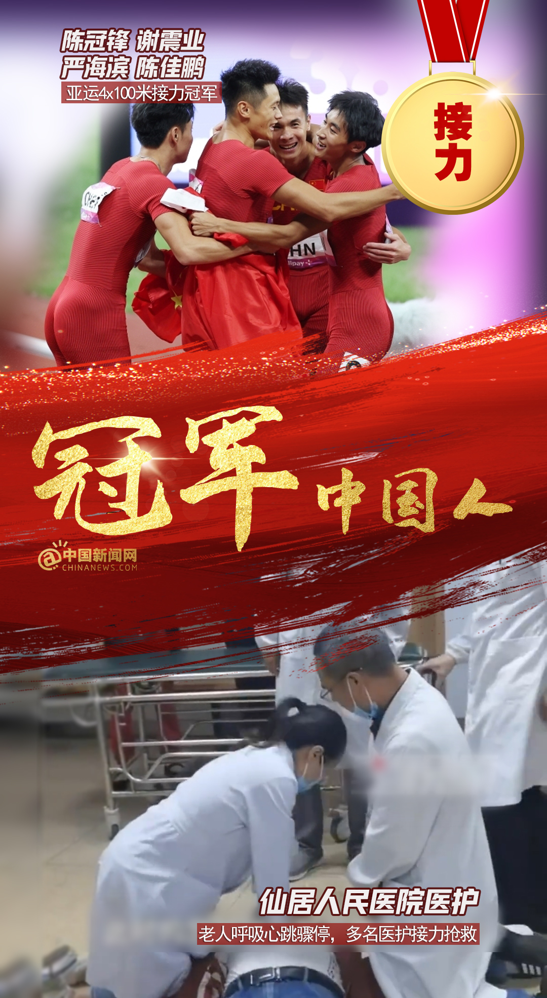 中新網(wǎng)12月15日電 全紅嬋、陳芋汐亞運雙人10米臺奪金,彭清林跳十幾米大橋救人;中國男子4×100亞運逆轉(zhuǎn)取勝,仙居人民醫(yī)院醫(yī)護接力搶救老人…賽場上,人生中,他們都是我們心中的冠軍!2023,冠軍屬于每個奮力拼搏獲得成績,默默付出與人為善,激勵、幫助、照亮他人的中國人!