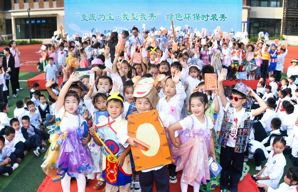 2023年9月,悅?cè)菪W(xué)舉辦環(huán)保時(shí)裝秀活動(dòng)。新華社發(fā)