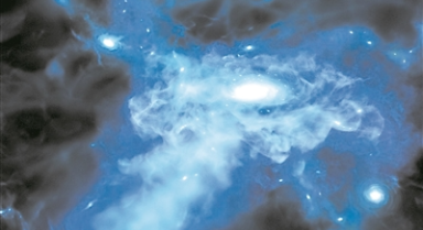 早期星系形成過(guò)程中積累并吸積氣體。圖片來(lái)源:美國(guó)國(guó)家航空航天局