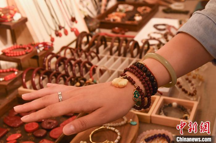 “女朋友喜歡逛博物館,也喜歡穿國風服裝,這款手鏈很適合她?!鳖櫩屠钭恿卣J為,佩戴國風首飾給生活增添了時尚。