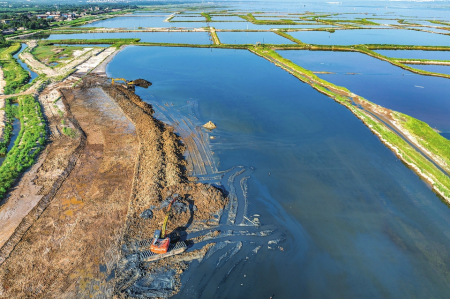 圖為正在進(jìn)行二期生態(tài)修復(fù)的鹽湖。