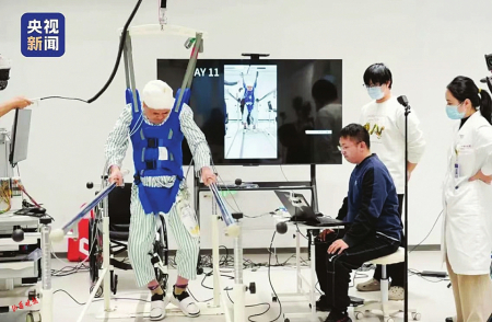 林先生已經(jīng)可以在懸吊下獨(dú)立使用助步器行走,他激動(dòng)地說:“我終于再次體會(huì)到走路的感覺。”
