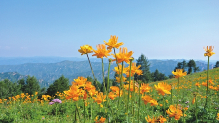 毛茛科金蓮花屬多年生草本植物,有“旱地蓮”“金芙蓉”之稱(chēng)。不僅具有極高觀(guān)賞價(jià)值,還可入藥。每年盛夏,駝梁等地的金蓮花連片綻放,是五臺(tái)山標(biāo)志性生態(tài)景觀(guān)。