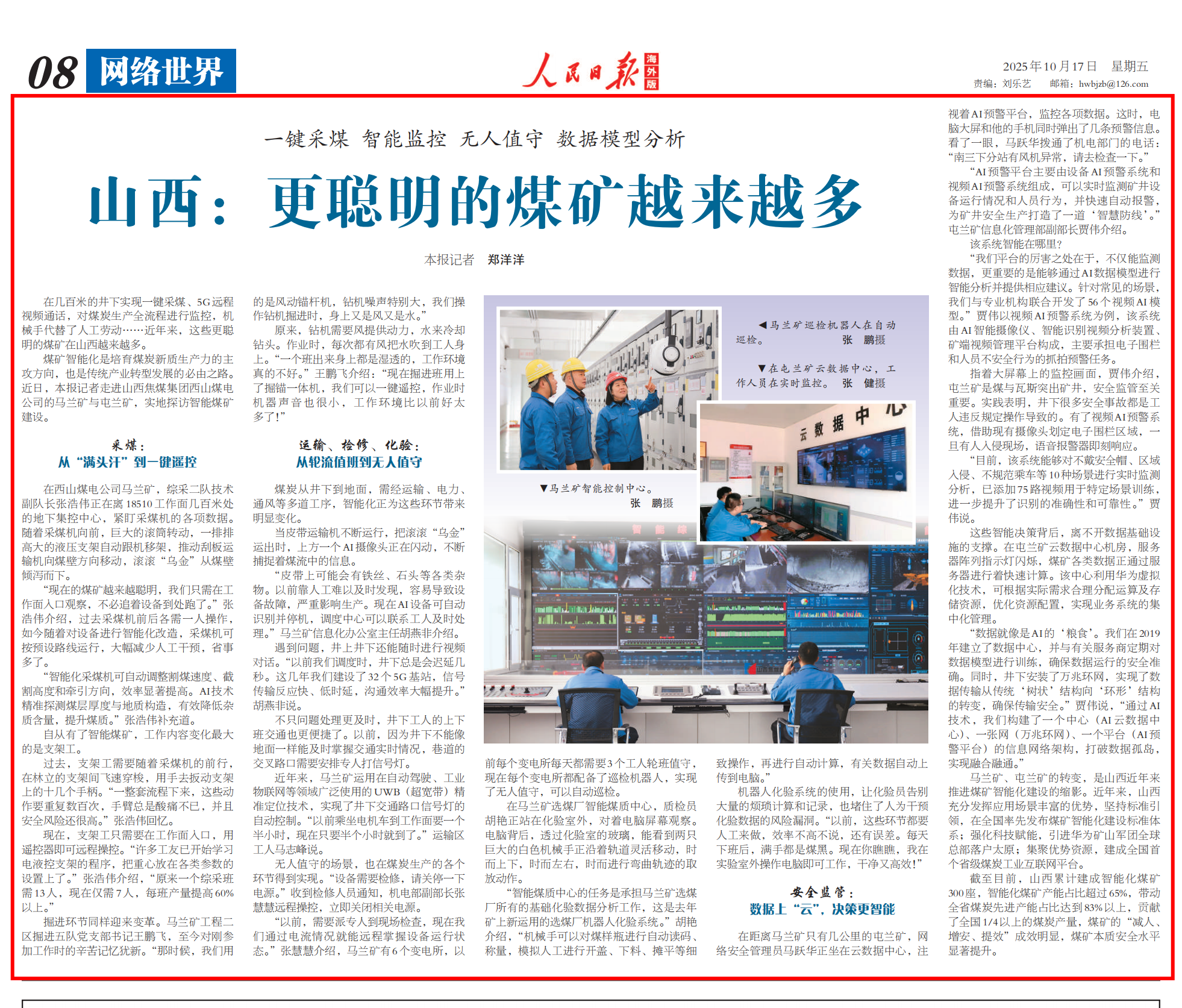 “數(shù)據(jù)就像是AI的‘糧食’。我們?cè)?019年建立了數(shù)據(jù)中心,并與有關(guān)服務(wù)商定期對(duì)數(shù)據(jù)模型進(jìn)行訓(xùn)練,確保數(shù)據(jù)運(yùn)行的安全準(zhǔn)確。同時(shí),井下安裝了萬(wàn)兆環(huán)網(wǎng),實(shí)現(xiàn)了數(shù)據(jù)傳輸從傳統(tǒng)‘樹(shù)狀’結(jié)構(gòu)向‘環(huán)形’結(jié)構(gòu)的轉(zhuǎn)變,確保傳輸安全。”賈偉說(shuō),“通過(guò)AI技術(shù),我們構(gòu)建了一個(gè)中心(AI云數(shù)據(jù)中心)、一張網(wǎng)(萬(wàn)兆環(huán)網(wǎng))、一個(gè)平臺(tái)(AI預(yù)警平臺(tái))的信息網(wǎng)絡(luò)架構(gòu),打破數(shù)據(jù)孤島,實(shí)現(xiàn)融合融通?!?/p>