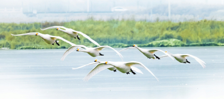 生態(tài)蝶變帶來了生物多樣性的躍升,鳥類種類從2021年前的100余種增至240多種,越冬天鵝數(shù)量從幾十只壯大到二百多只,反嘴鷸集群起飛鋪就“鳥浪”奇觀。