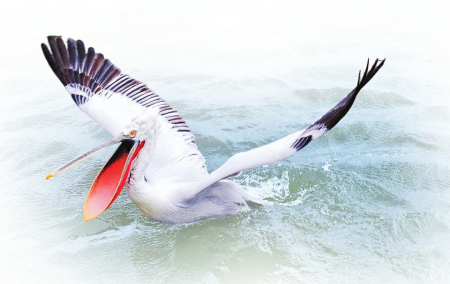 鹽湖映霞 粉羽翩躚