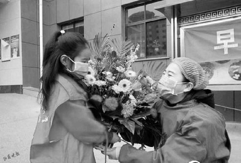 帶著6歲女兒曹夢惠上陣的曹東平和帶著兒子一起配送的長治正能量公益協(xié)會會長羅春江格外惹眼?!吧详嚫缸颖保半m然不在前線,但希望通過這樣一種方式助力疫情防控阻擊戰(zhàn)早日打贏?!绷_春江說。