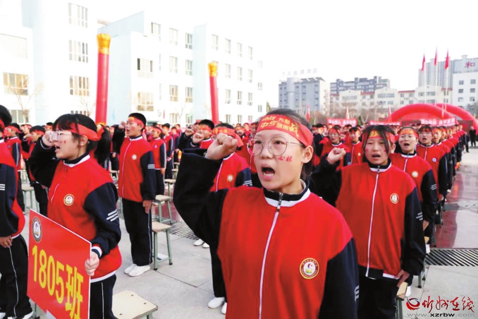 本報訊 為了激發(fā)學(xué)生競爭意識和拼搏精神,促使初三學(xué)生以良好的精神狀態(tài)投入到中考備考復(fù)習(xí)中,3月11日下午,忻州市第五中學(xué)舉行2021屆初三中考百日誓師大會,學(xué)校領(lǐng)導(dǎo)及家長代表為初三師生加油鼓勁,初三年級全體師生參加。
