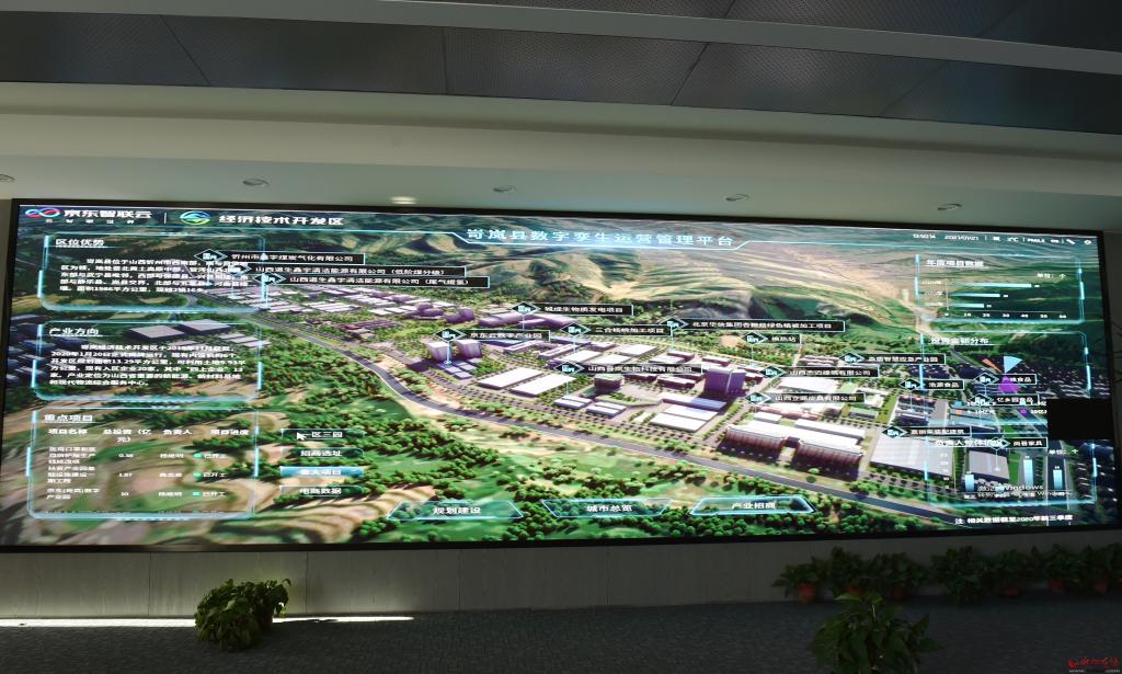 在位于岢嵐縣融媒體中心的項目臨時辦公地,對著占滿一堵墻的大屏幕,記者聽取了京東(岢嵐)有關業(yè)務工作人員的情況介紹。