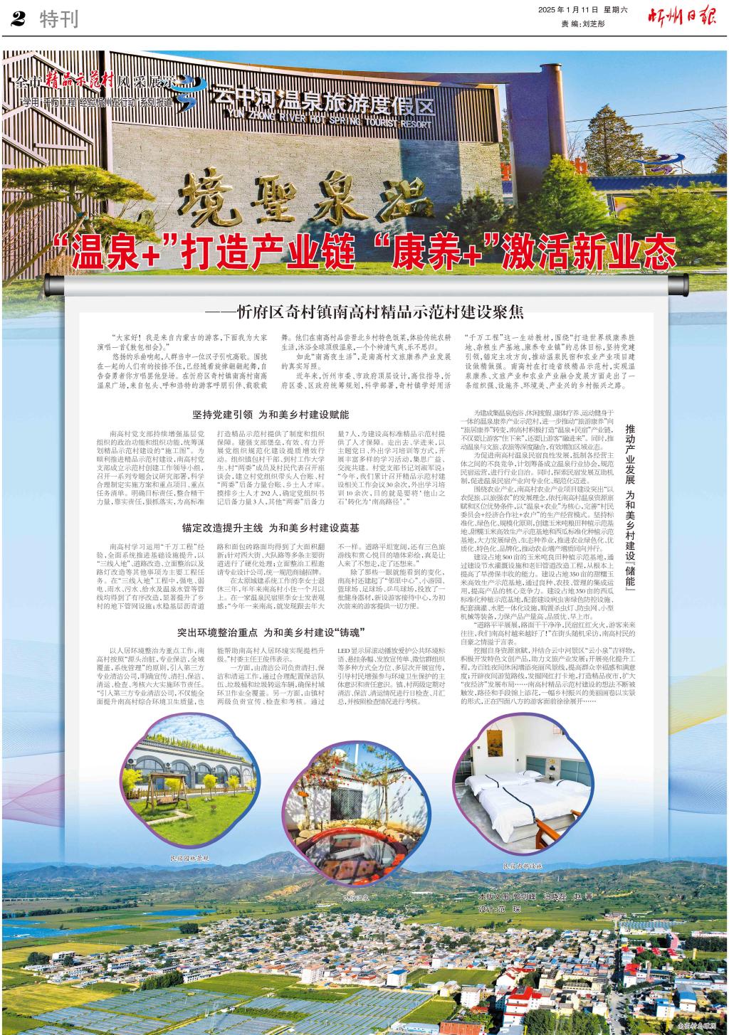 近年來,忻州市委、市政府頂層設(shè)計(jì),高位指導(dǎo),忻府區(qū)委、區(qū)政府統(tǒng)籌規(guī)劃,科學(xué)部署,奇村鎮(zhèn)學(xué)好用活“千萬工程”這一生動教材,圍繞“打造世界級康養(yǎng)勝地、雜糧生產(chǎn)基地、康養(yǎng)專業(yè)鎮(zhèn)”的總體目標(biāo),堅(jiān)持黨建引領(lǐng),錨定主攻方向,推動溫泉民宿和農(nóng)業(yè)產(chǎn)業(yè)項(xiàng)目建設(shè)做精做強(qiáng)。南高村在打造省級精品示范村,實(shí)現(xiàn)溫泉康養(yǎng)、文旅產(chǎn)業(yè)和農(nóng)業(yè)產(chǎn)業(yè)融合發(fā)展方面走出了一條組織強(qiáng)、設(shè)施齊、環(huán)境美、產(chǎn)業(yè)興的鄉(xiāng)村振興之路。