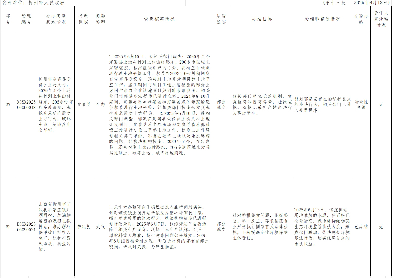附件【中央生態(tài)環(huán)境保護(hù)督察組群眾信訪舉報(bào)轉(zhuǎn)辦和邊督邊改公開情況一覽表(第十三批).xlsx已下載