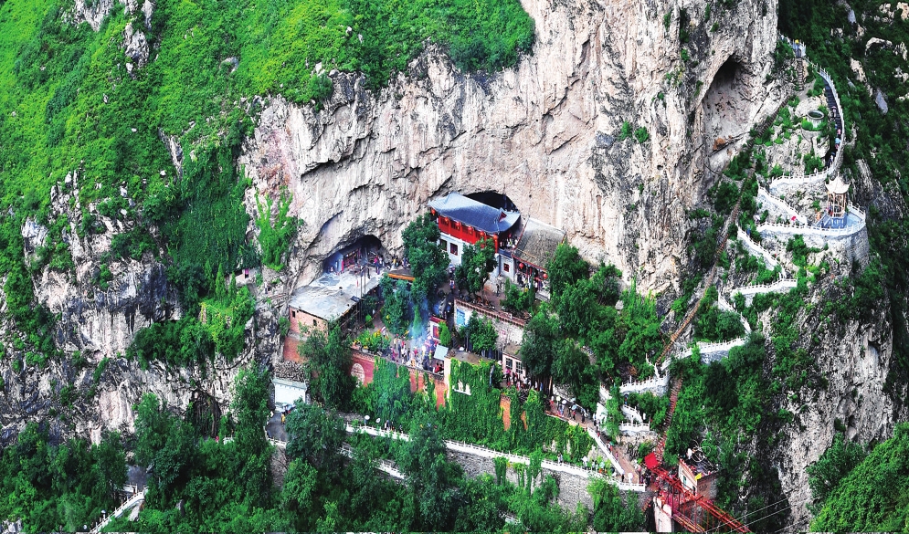 明代《忻州志》記載:“仙人洞,在福田寺左,相傳通平山縣,產(chǎn)瑪瑙?!边@段記載揭示了另一個(gè)秘密——洞穴可能通往河北平山縣。1992年開發(fā)時(shí)探明深度已達(dá)2000余米,但實(shí)際長(zhǎng)度仍是未解之謎。洞內(nèi)恒溫在8-11℃之間,形成“盛夏涼風(fēng)習(xí)習(xí),寒冬溫暖如春”的獨(dú)特微氣候。當(dāng)游客沿著依巖而建的“天梯”或乘坐索道抵達(dá)洞口時(shí),便踏入了一個(gè)四季恒常的時(shí)空膠囊。