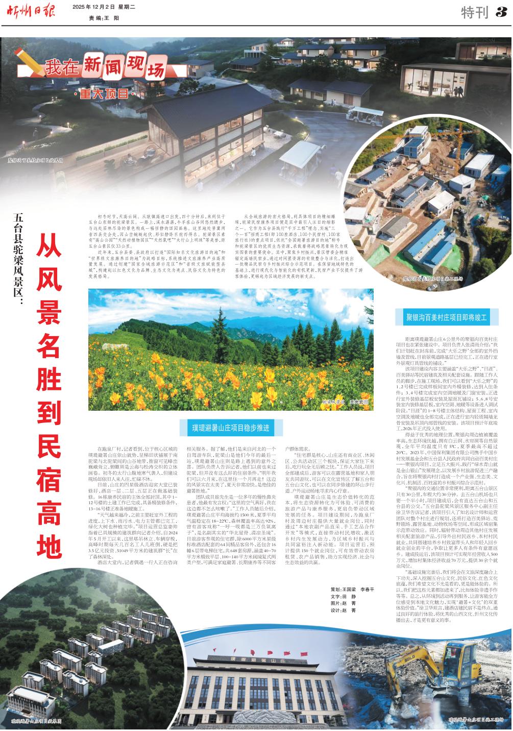 在跑泉廠村,記者看到,位于核心區(qū)域的璞瑅避暑山莊依山就勢,呈梯田狀鋪展于南駝梁與北駝梁間的山谷地帶,推窗可見峰巒巍峨聳立,俯瞰則是云海與松濤交織的立體畫卷。初冬的太行山腹地寒氣襲人,但建設現(xiàn)場卻依舊人來人往,忙碌不休。
