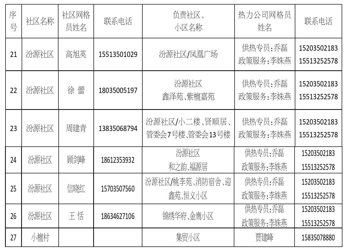 忻州城區(qū)供熱三片區(qū)網(wǎng)格員信息公示