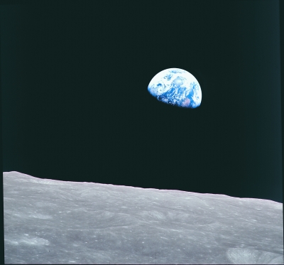 1968年,人類(lèi)首次繞月飛行,阿波羅8號(hào)飛船上,航天員威廉·安德斯拍下了一張照片——黑色錦緞般的太空中,蔚藍(lán)的地球正從月球的地平線上,冉冉升起。
