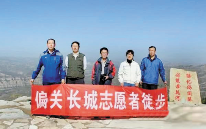 2014年,忻州市長城學會偏頭關分會成立,賀文更加明白,走長城并非是要征服長城,而是要把長城當作一門學問、一種文化去學習、研究、探討。2008年,他買到第一本1993年版《偏關縣志》,開始了深度認識家鄉(xiāng)、探尋家鄉(xiāng)的文化之旅。于是,再走長城時,他學會了發(fā)現(xiàn)問題,并嘗試寫了1400字的小文章《樓溝堡發(fā)現(xiàn)疑似明代磚窯遺址》發(fā)到朋友圈。沒想到,這篇小文章引起了忻州市文物局的重視并打電話到縣文物局問詢,第二天相關工作人員便來到偏關,在縣文物局副局長胡美倉的帶領下,進行實地調研、考證,確定賀文這個新發(fā)現(xiàn)是1994年新版《偏關縣志》中沒有記載的,便交由博物館館長孫軍明寫了一篇《考古報告》。這件事極大地鼓舞了賀文,單純走長城的賀文,終于開始了他發(fā)現(xiàn)前人之未發(fā)現(xiàn)、考證前人之未考證的長城研究生涯,成長為一名長城研究者。
