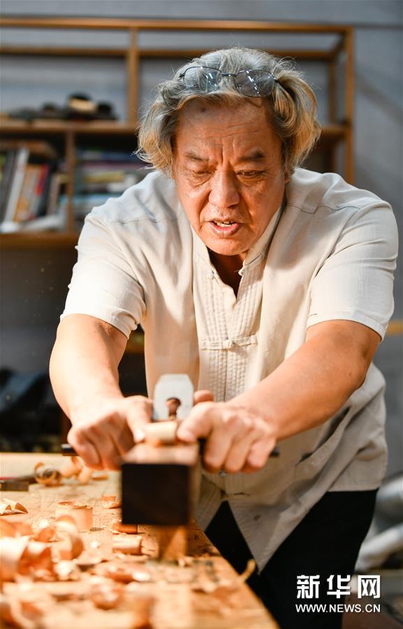 8月25日,在天津職業(yè)大學(xué)辛全生大師木藝工作室,辛全生在用刨刀刮料。今年62歲的辛全生是天津市南開區(qū)傳統(tǒng)木工榫卯技藝的非遺代表性項(xiàng)目傳承人。2019年9月,天津職業(yè)大學(xué)為發(fā)展并傳承木工技藝,邀請辛全生作為老師給學(xué)生們授課,負(fù)責(zé)教授學(xué)生們榫卯結(jié)構(gòu)知識和木藝家具制作等實(shí)用技巧,并于2019年底在校內(nèi)建立辛全生大師木藝工作室。 辛全生出生于匠人家庭,他聽從父親的建議從16歲開始學(xué)習(xí)木工。40余年的木工生涯,辛全生經(jīng)歷過木工行業(yè)曾經(jīng)的紅火和后來的逐漸衰落,也曾在最艱難的時(shí)候做過別的營生。但無論如何,辛全生始終忘不了自己的木工身份?!袄献孀诹粝聛淼臇|西不能丟了,要傳承下去,否則將來的后代誰都不知道木工榫卯技術(shù)的存在了?!毙寥f。 近年來,有近百名不同職業(yè)、不同年齡的人慕名前來拜辛全生為師,學(xué)習(xí)傳統(tǒng)木工榫卯技藝。辛全生說,我會(huì)讓徒弟們學(xué)好木工榫卯技藝,讓中國的傳統(tǒng)手藝發(fā)揚(yáng)光大。新華社發(fā)(孫凡越 攝)