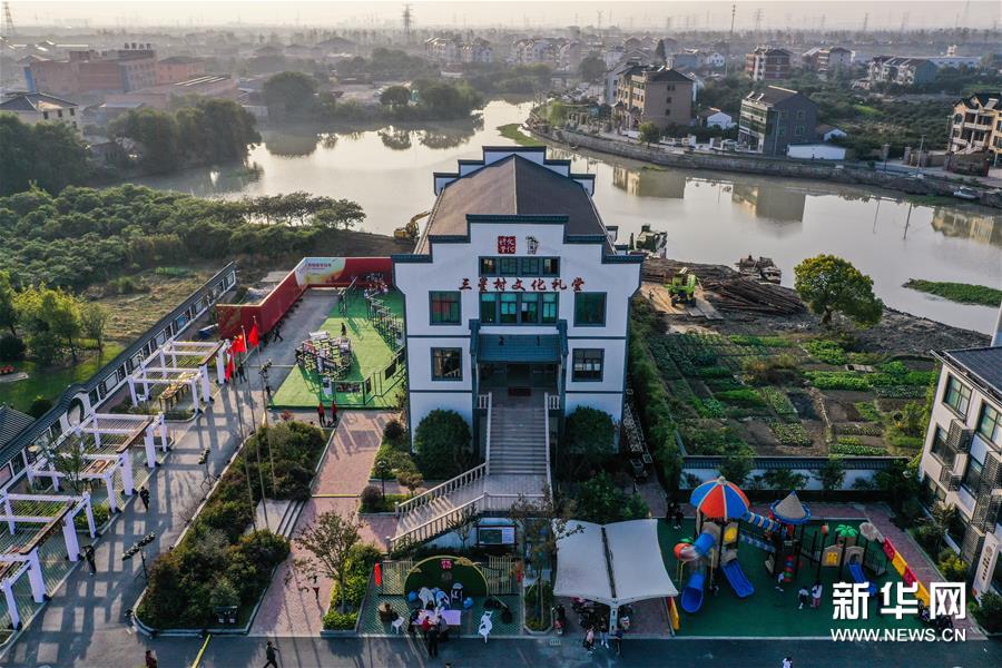 11月7日,在杭州市余杭區(qū)塘棲鎮(zhèn)三星村文化禮堂前,村民在展示傳統(tǒng)技藝“翻絲綿”(無人機(jī)照片)。當(dāng)日,浙江省杭州市余杭區(qū)農(nóng)村文化禮堂“百村千場”聯(lián)盟走親在塘棲鎮(zhèn)三星村文化禮堂正式啟動(dòng)?;顒?dòng)現(xiàn)場組織了米塑、滾燈、鰲魚燈、高蹺、掮爐子等余杭非遺技藝走親展示以及塘棲鎮(zhèn)禮堂聯(lián)盟原創(chuàng)節(jié)目展演。 從2020年3月開始,浙江省杭州市余杭區(qū)塘棲鎮(zhèn)以“小康路上我們一起曬幸福”為主題,啟動(dòng)美麗鄉(xiāng)村禮堂文化節(jié)活動(dòng),開展“幸福接力賽”、文化“云”講課等一系列基層文化活動(dòng)。塘棲鎮(zhèn)還創(chuàng)新推進(jìn)了“禮堂聯(lián)盟”結(jié)對互促工作,與區(qū)級文化團(tuán)隊(duì)結(jié)對共建,使鄉(xiāng)村文化禮堂“活”起來,全面提升鄉(xiāng)村百姓的幸福感。新華社記者 徐昱 攝