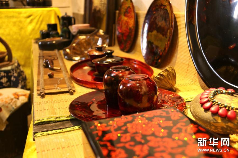 重慶漆藝第六代市級(jí)傳承人陳芷月的漆藝工作室里,陳列著她制作的漆器(8月10日攝)。新華社記者 吳燕霞 攝