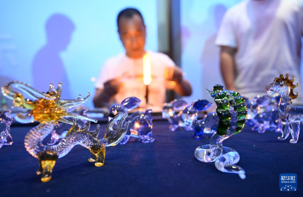 5月16日,民間藝人譚志國(guó)展示手工制作玻璃工藝品技藝。