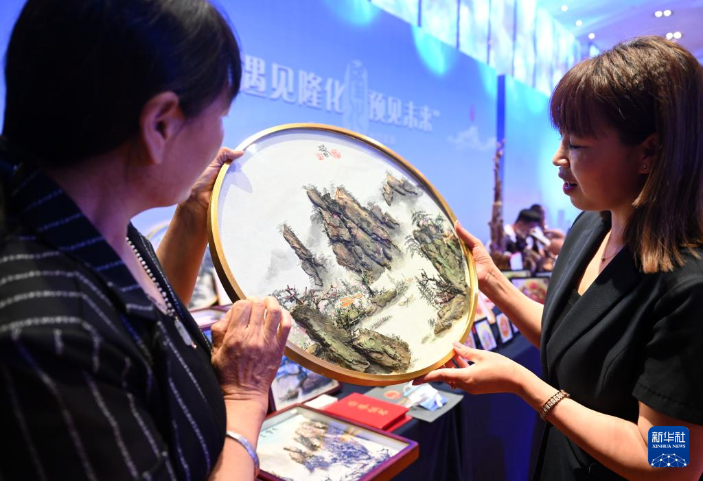 當(dāng)日,“遇見(jiàn)隆化 預(yù)見(jiàn)未來(lái)”河北隆化招商推介會(huì)在北京舉行。隆化縣就農(nóng)業(yè)、文旅、工業(yè)等特色優(yōu)勢(shì)產(chǎn)業(yè)進(jìn)行推介,當(dāng)?shù)孛耖g藝人在推介會(huì)上展示技藝。新華社記者 金良快 攝