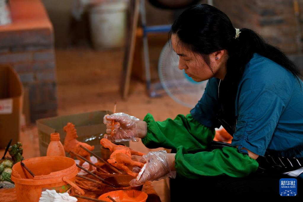 河南省洛陽(yáng)市朝陽(yáng)鎮(zhèn)南石山村以生產(chǎn)唐三彩而聞名。近年來(lái),當(dāng)?shù)卣e極引導(dǎo)三彩產(chǎn)業(yè)數(shù)字化建設(shè)工作,推動(dòng)唐三彩燒制技藝傳習(xí)館、唐三彩陶藝博物館、唐三彩文化研學(xué)所等優(yōu)化升級(jí)。目前,南石山村唐三彩產(chǎn)業(yè)的專業(yè)燒制藝人有2000余人、文化企業(yè)68家,年產(chǎn)值達(dá)3.5億元。新華社記者 吳剛 攝