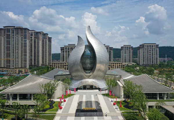 中間高起猶如破土而出的“種子”,被水波狀的“葉片”包裹著向天際延伸,合院環(huán)繞其四周,仿佛一幅建筑山水的絕妙圖景,點(diǎn)亮整個光谷。位于武漢東湖高新區(qū)的中國建筑科技館,在藍(lán)天白云映襯下格外搶眼。暑期,這里成為青少年觀眾游覽、研學(xué)的最佳選擇之一。