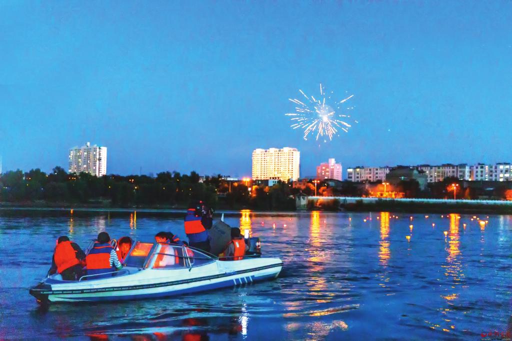 夜幕降臨,一盞盞寄予了人們美好祈愿的蓮花燈被緩緩放入黃河水中,星星點(diǎn)點(diǎn)的燈火在暗夜中飄向遠(yuǎn)處。一時(shí)間,河中水映燈影,燈耀波光,河面上忽明忽滅的河燈與空中的焰火交相輝映,寄托了人們美好的愿望,傳遞著延續(xù)數(shù)百年的祝福。