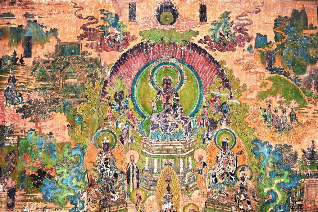 五臺(tái)山現(xiàn)存的寺廟壁畫歷史悠久,跨越年代廣,分布相對(duì)集中,涵蓋了唐、宋、金、元、明、清、民國各個(gè)朝代。而現(xiàn)存完好的壁畫多集中在五臺(tái)、繁峙兩縣,其中比較著名的除了東大殿壁畫外,還有南禪寺西配殿元代壁畫,繁峙巖山寺金代壁畫,繁峙公主寺以及五臺(tái)山佛光寺文殊殿、南山寺明代壁畫,五臺(tái)國都殿村關(guān)羽壁畫,五臺(tái)山龍泉寺文殊殿民國壁畫等。