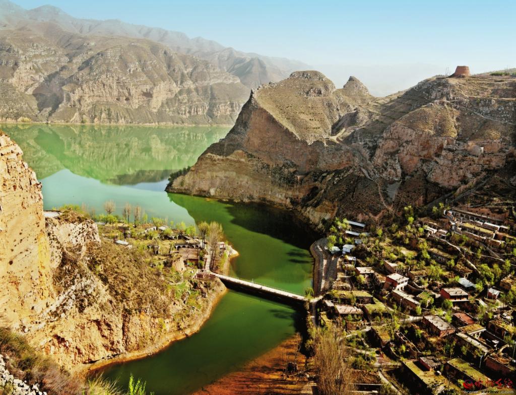 關(guān)河口的地理形勢相當(dāng)險要,是一處絕妙的黃河景觀。關(guān)河入黃河處河道幽深狹窄,蜿蜒曲折的崖壁垂直落下,高度約100余米。關(guān)河口村對面的崖壁更為險要,俗稱螞蟻崖,意為從崖頂看崖底的人,小如螞蟻,驚險可怖。明萬歷年間的偏關(guān)學(xué)士盧承業(yè)在《關(guān)河魚浪》詩里詠嘆道:“關(guān)西形勢若崤函,北塞天橫折向南。巖戍飛樓懸壯劍,河翻浪雪點幽潭?;h蝶影驚魚穴,風(fēng)送濤聲破烏庵。相接云峰傳八陣,籌邊人至把兵談?!痹娭忻枋鑫麝P(guān)河口地勢險要,形若西秦函谷關(guān),就連懸崖峭壁上的巖石和望河樓也像懸在半空中戍邊的利劍,令來犯者望而卻步。但這些都無法掩飾關(guān)河口恬適幽靜的景致,河浪如雪,濤聲如雷,潭似點墨,花開花落,彩蝶翩翩,魚影躍躍……此情此景誰能將它與烽火連天的邊關(guān)聯(lián)系在一起呢?